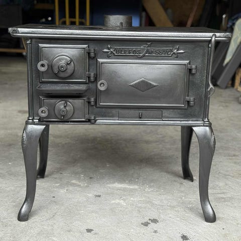 Nydelig liten helrenovert vedovn Ulefos 557C med integrert stekeovn. Fint å ha der hvor det er ikke strøm-som hytta. Hentes på Støren. Pris 10000 kr.