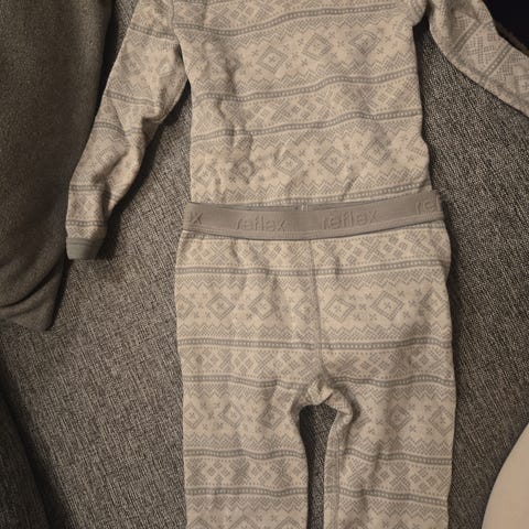 Ull sett fra Reflex i str 98/104, snøfall serien. Ny med lappen på. 50 % merinoull. Ny pris er 379 kr per del.