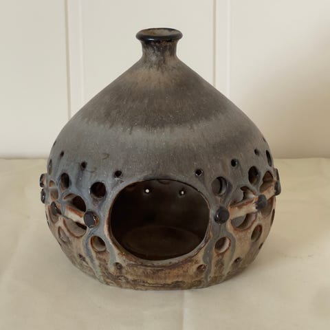 Keramisk sitruspresser med mørk glasur.