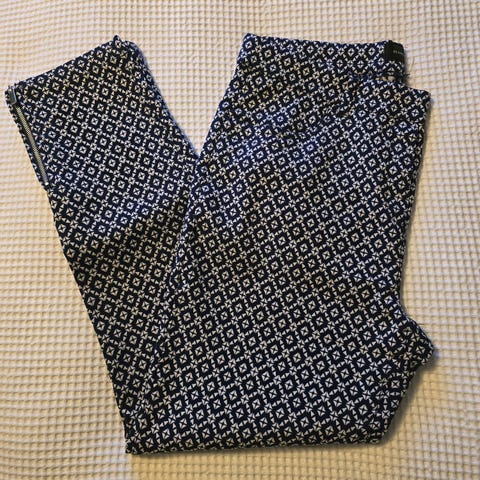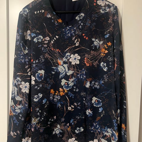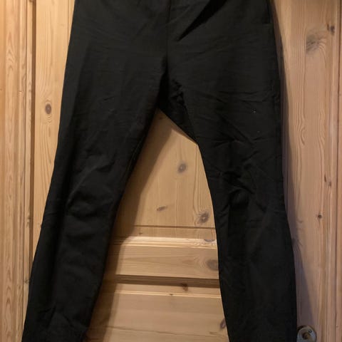 Elegant bukse med press, faller fint og krøller ikke. Tynt og behagelig stoff. God plass til midje og flatterende fall. Noe strikk i livet. Brukt 1 gang. Stor i størrelsen. Framstår som ny.