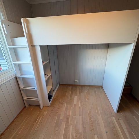 Opprinnelig er dette en IKEA STORÅ loftseng som er kuttet i høyde, bredde og lengde.