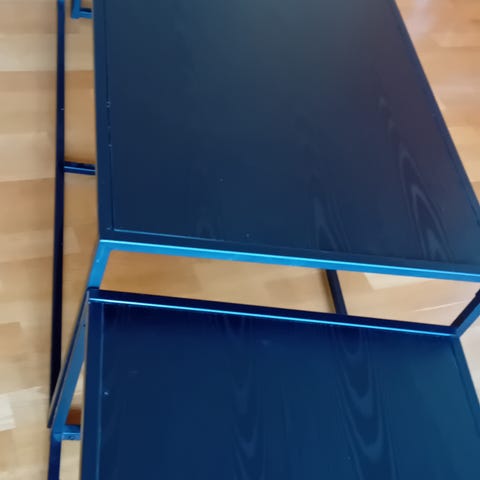 Selger mitt veldig pene sofabord, det er synlig brukskader på det pga flytting, jeg kan sende dere ytterligere bilder - dette kan også fikses med laminat fra Lindas dekor i samme mønster. Bordet er originalt kjøpt for 4000 NOK. Det kan ikke demonteres, så det må hentes hel på 120 x 55.