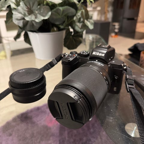 Selger Nikon Z50 + 16-50mm f3.5-6.3 + Nikkor DX 24mm f1.7 og ekstra batteri. Følger med en veldig fin kameraveske. Følger med en lader til to batteri med USB-C. Original lader følger også med. Det er tatt cirka 14 000 bilder, men kameraet er blitt pent brukt. Forventet levetid på lukkeren er rundt 150 000, så her er det mye liv igjen. Ingen feil eller mangler. Feilfri skjerm.