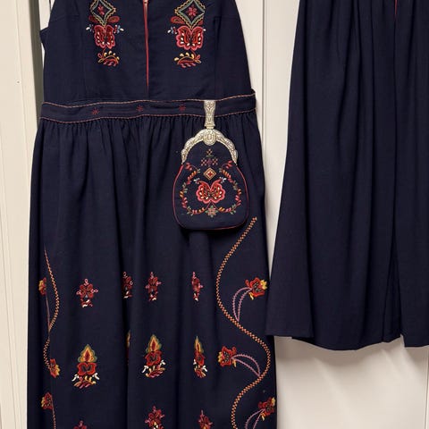 Lengde: 110 cm fra livet og ned - har sist vært brukt av en person med høyde rundt 1.62.