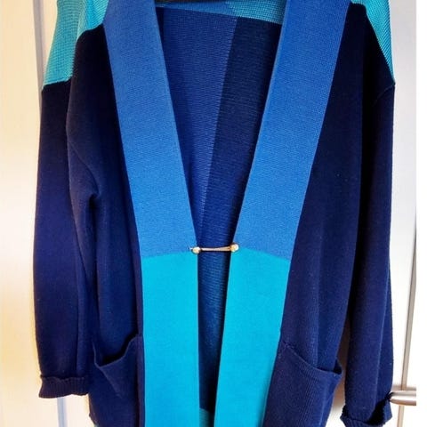 KRISS – lang strikket jakke / cardigan, Made in Sweden (str. M)