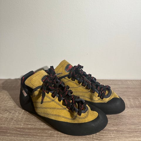 Red Chili Puzzle klatresko i blå og oransje farge. Klatreskoene har borrelås for enkel justering og passform. Egnet for klatring med slitesterkt materiale og gummisåle for godt grep. Str.34.5, brukt i ett år 🙏