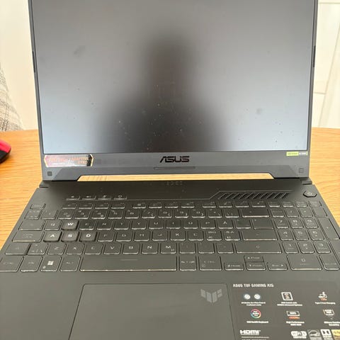 Selger en rå og strøken Asus TUF Gaming laptop med 17.3" 1920x1080 med 144Hz skjerm og med en rask Intel i7-10700F generasjon 10 prosessor.