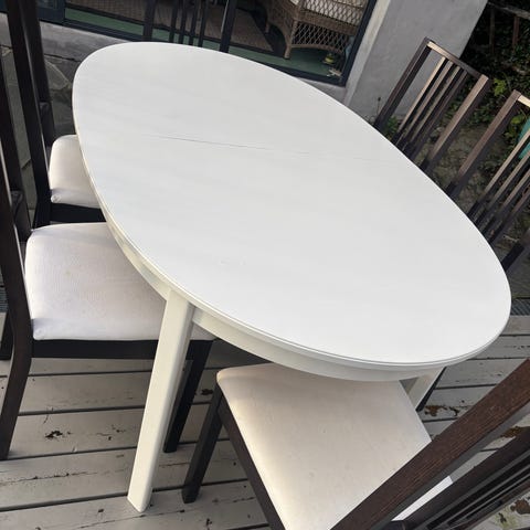 Bordet selges for 700 og stolene for 600 pr stk. Samlepris 2.999.
