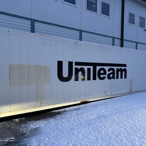 Conteiner har rustfrie plater utvendig.