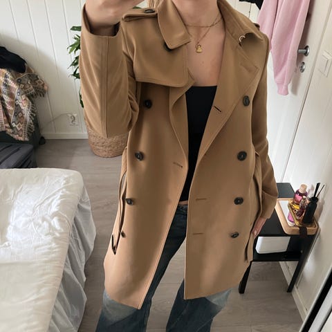H&M Kåpe i størrelse L for kvinner. Kåpen er beige, Den har knappelukking og en klassisk krage. Passer til bruk som ytterplagg i kaldere vær.