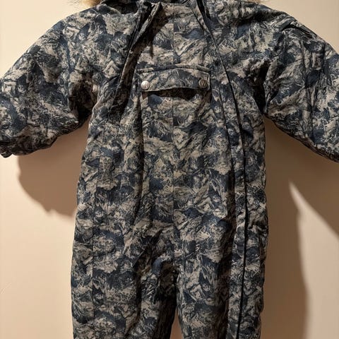 Varm og god vinterdress i str 80. Noe slitasje på strikk men fortsatt intakt. Mangler en knapp for feste av fuskepels til hetta. Se bilder