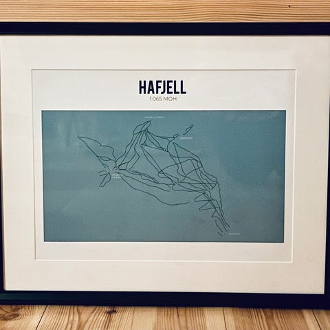 Profesjonelt innrammet med sort ramme, passepartout og kunstglass. Selges komplett og klar til oppheng.