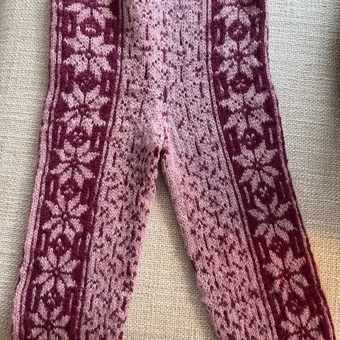 Trenger prinsessa ny ullbukse? Nystrikket selebukse i 100 % ull. Str er ca 2 år. Buksa er strikket i Smart og Rubin og vaskes på ullvask 40 grader