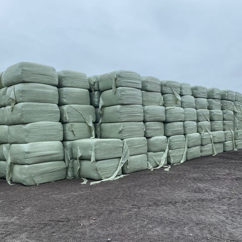Halm i rundball og firkant. Høyensilasje i firkantball, silofor i rundball.