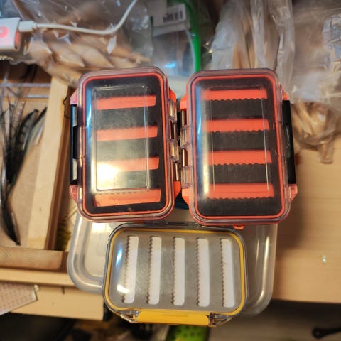 Fladen Fiskeskrin med håndtak og flere rom for oppbevaring av fiskeredskaper. Egnet for organisering av små fiskeutstyr og tilbehør.