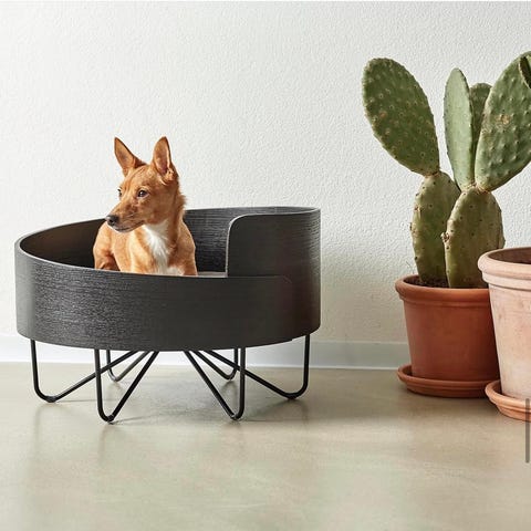 Enkelt design: Den rektangulære kjæledyrsengen i tre er enkel, uten krimskrams, som gjør den spesielt egnet for minimalistiske oppholdsrom.