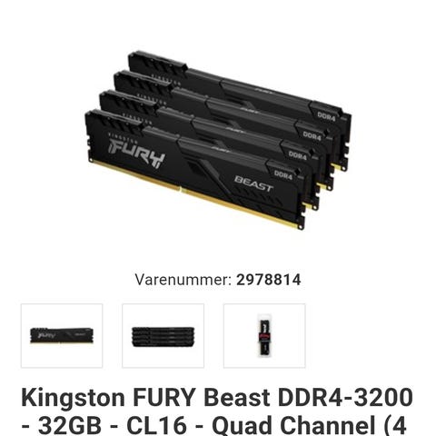 Kingston KCP432SD8/32 tilleggsutstyr bestående av minnemoduler. Produktet leveres i original emballasje. 2 stk 32gb selges 1800 pr stk