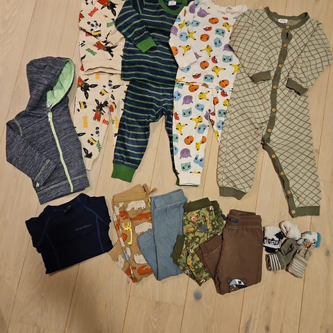 barneklær klespakke i størrelse 86. I merkene champion, newbie, pomp de lux, name it. Pent brukte plagg, kun to små grønne streker på hettegenseren. ulike plagg som pysj, bukser, gensere og hettegenser.