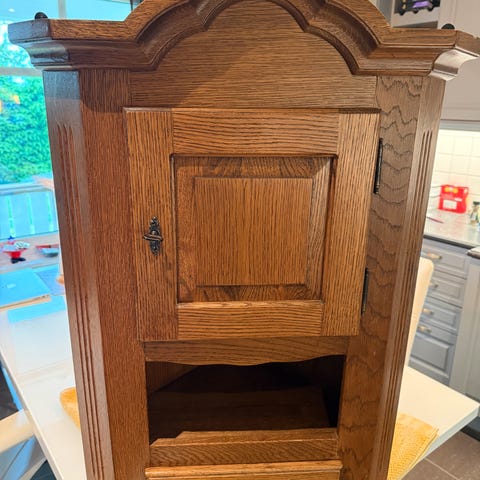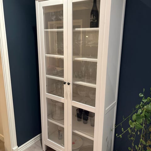 Pent brukt vetrineskap selges. Skapet kan deles i to.