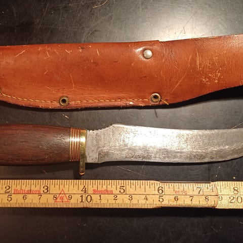 Selge denne jakt og turkniv. Klingen er fra Mora of sweden og ville tro den er håndlaget.