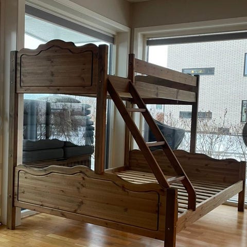 Lite og pent brukt familieseng/familiekøyeseng med madrasser og overmadrasser til salgs. Demontert.