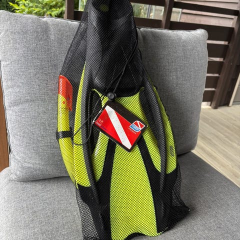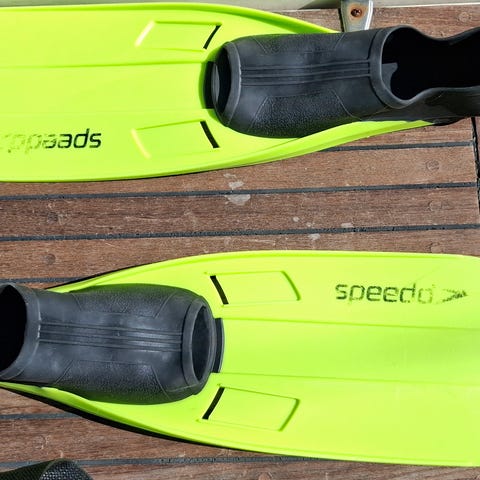 Helt ubrukte svømmeføtter fra frivannsliv som ble kjøpt for noen år siden. Oppbevart tørt innendørs.