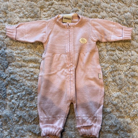 Svært pent brukt Lillelam ulldress selges. Ikke synlig brukt, ingen hull eller merker. Rosa. Størrelse 62. 100 % ull.