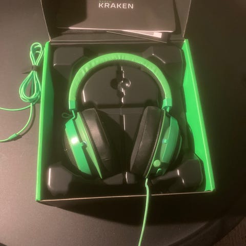 Razer Kraken hodetelefoner i svart farge. Over-ear design med polstrede øreputer og justerbar hodebøyle for komfortabel passform. Passer til bruk med PC, spillkonsoller og mobile enheter. Med mikrofon.