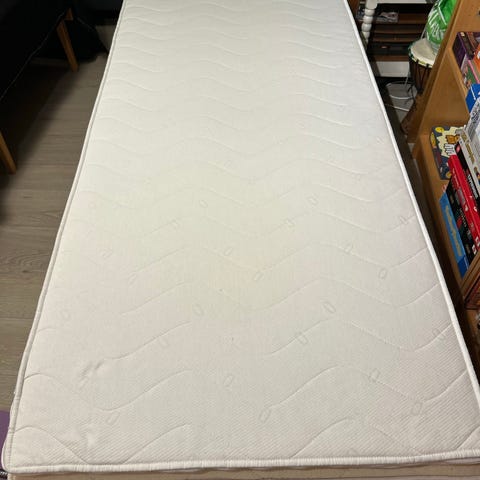 Pent brukt grå rammemadrass med stålbein selges! Hvis ønsket, kan overmadrass og sengegavel følge med. Seng kostet 5000 pluss, sengegavlen 1300+. Rammemadrassen er vasket med vannstøvsuger og overmadrassen vasket! Alt er kjøpt på Møbelringen, for 2 år siden😊 Sønnen min ville ha gamingbord med seng integrert, så da blir denne solgt, selv om den er veldig ny!