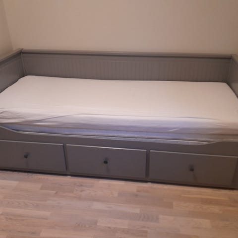 Hemnes seng/ dagseng/ sofa med 3 skuffer. To gode madrasser medfølger.