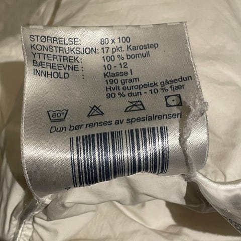 Ny pris på dynen er 600kr