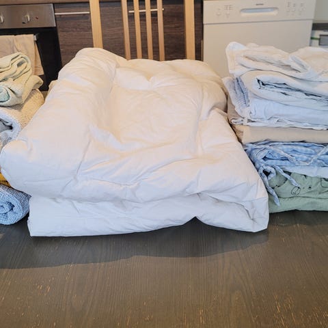 Helt ny dyne 80x100 og to stk sengetøy. Det blå er 100% bomull veldig mykt og godt.