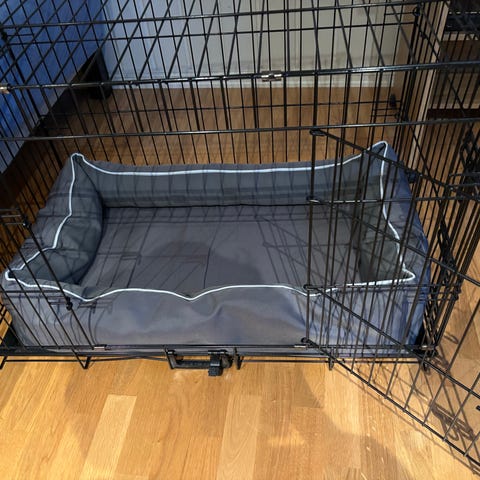Hundeburet er lite brukt og i god stand! Buret er i metall med plastbunn. Kan legges sammen.