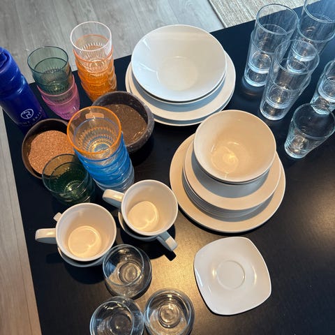 Kjøkkenutstyr, kopper, tallerkener