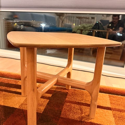 Solid og vakkert vintage sofabord i heltre i mørkbeiset eik.