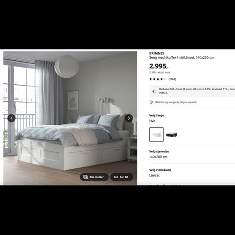Seng med underseng og oppbevaring, hvit, 90x200 cm selges. Sengen er pent brukt og har ingen skader. Madrass til sidedel følger med. Det følger ikke med madrass til hoveddel. Praktisk sideskuffer til oppbevaring.