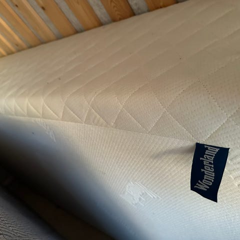 Brukt som dobbelseng her, selges uten overmadrass