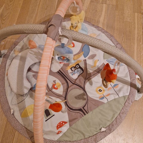 Skip hop treetop friends classic babygym selges da den ikke brukes lengre. Pent brukt. Fuglen i midten lager ikke lengre lyd, og det ene festet er festet med tau grunnet svakhet i festet. Ingen av delene har hatt noe å si for bruken.