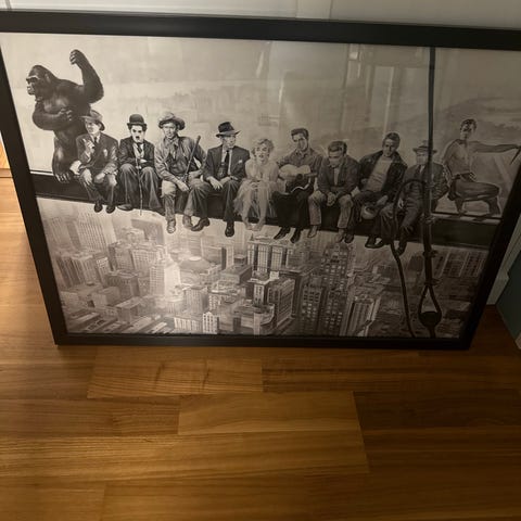 Inkluderer et innrammet akvarellmaleri som forestiller et norsk kystlandskap med en brygge, en rød bygning og en båt i vannet. Maleriet er signert og datert 1999, med håndskrevne notater og etiketter på baksiden av rammen. Rammen er av tre med gullfarget finish. Selges høystbydende over 2500,00.