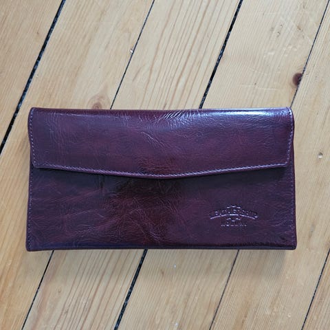 Ubrukt gul clutch / selskapsveske / lommebok. 20cm x 10cm. Ekte skinn. Kjøpt i Italia. Kan sendes, hentes på Disen eller på dagtid i Nydalen.