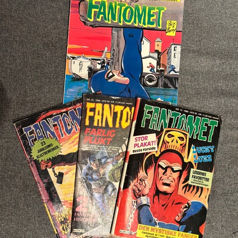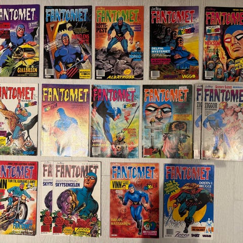 En bag med Fantomet tegneseriehefter fra 1980- og 90-tallet selges rimelig. Må hentes. Jeg har ikke telt antallet men antar ca 70-60 blader og noen få hefter.