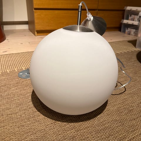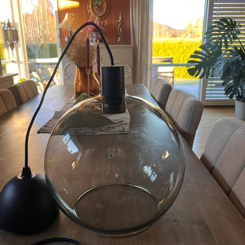 Takpendellampe i glass kjøpt på Lampehuset selges. Merke Belid Lightning Sverige i koppen.
