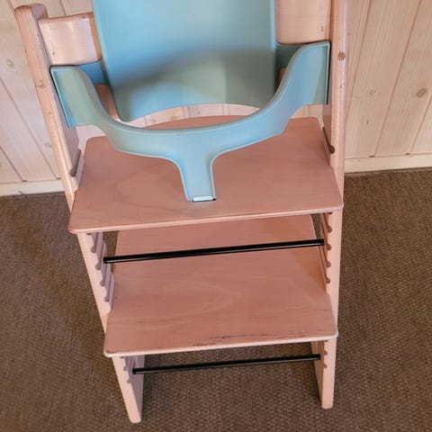 Selger disse to pent brukte hvite stolene fra Stokke. Noen små bruksmerker her og der (se bilder), men ellers fremstår de som veldig fine!