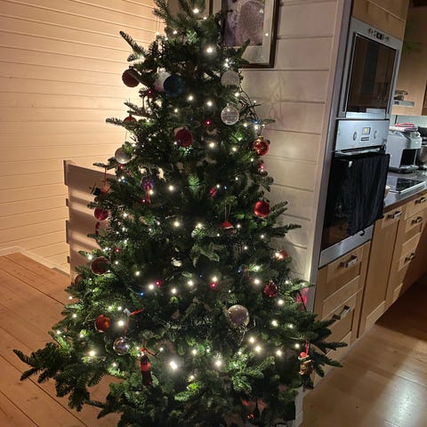 Rusta Chamonix kunstig juletre med integrerte lys, 150 cm høyt. Treet har grønne nåler og leveres med stativ. Passer til innendørs bruk i julen.