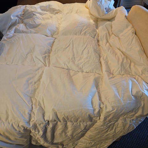 Materiale: 90 % dun og 10 % små fjær, trekk i 100% bomull