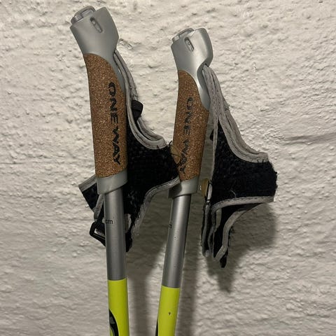 Gode og lette skistaver til konkurranse og trening. Har en liten skade på korken på håndtaket, se bilde.