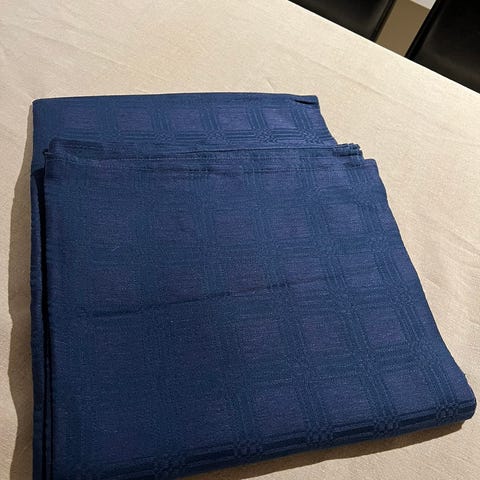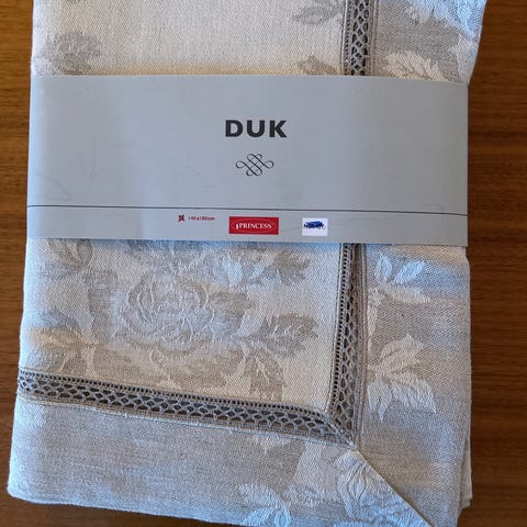 Selger en flott rød duk brukt bare en gang. Den er 50%lin og 50%bomull. Str 140 x 250 cm