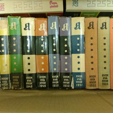 Selger fem eldre «Hvem Hva Hvor»-bøker samlet: