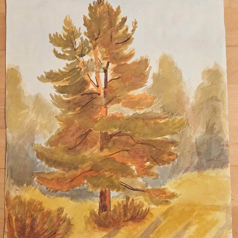 Lite naturstudie av Karsten Jacobsen datert 1971. Fin modernistisk bilde fra Sørlandet.