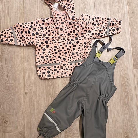 Veldig pent brukt regntøy fra kattnakken i str 80. Nesten ingen slitasje grunnet liten mobilitet.
